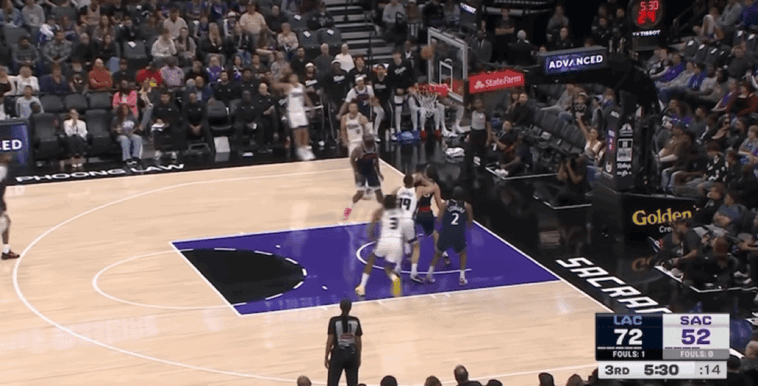 易边再战,萨博尼斯空切上篮,哈登突破抛投,拉文跳投命中,小琼斯三分命中。拉文和萨博尼斯连续得分,乔丹-米勒三分命中,萨博尼斯禁区连续打进,哈登急停跳投。哈登率领快船打出一波7-0的进攻高潮,进一步扩大领先优势。克利福德连得5分止损,保罗急停跳投,科林斯连得5分。三节比赛结束,快船90-61领先国王。