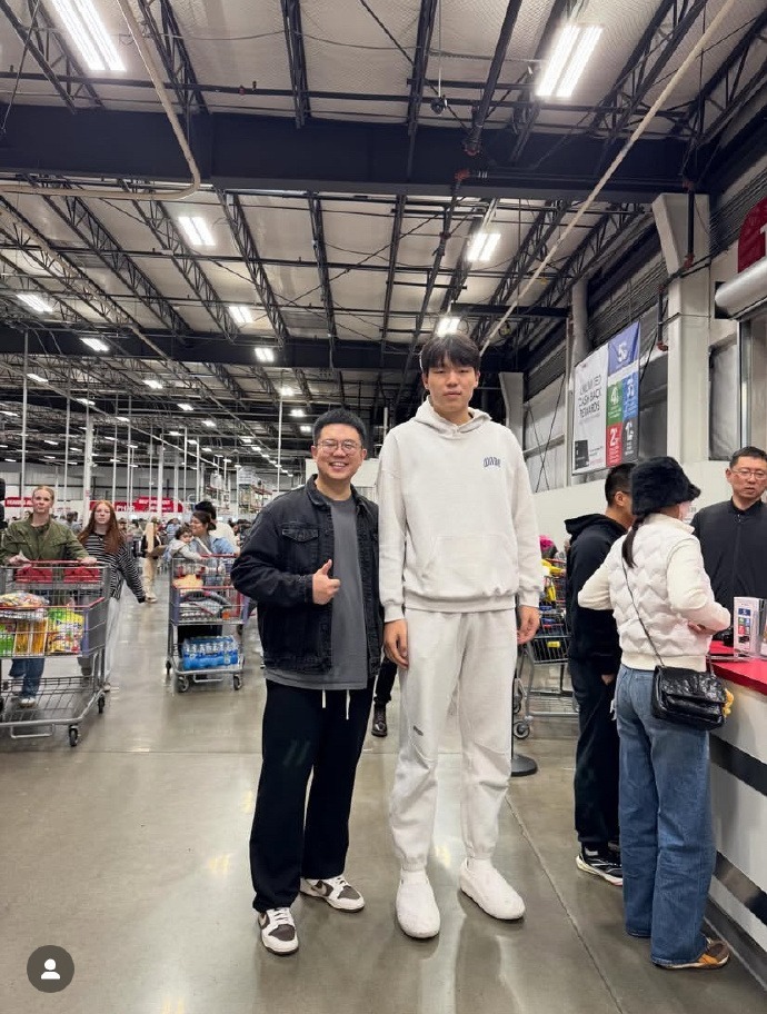 杨瀚森还和女友一起去当地超市购物,被网友发现之后,赶紧上前追星合影。杨瀚森也很有礼貌地答应了对方的请求。
