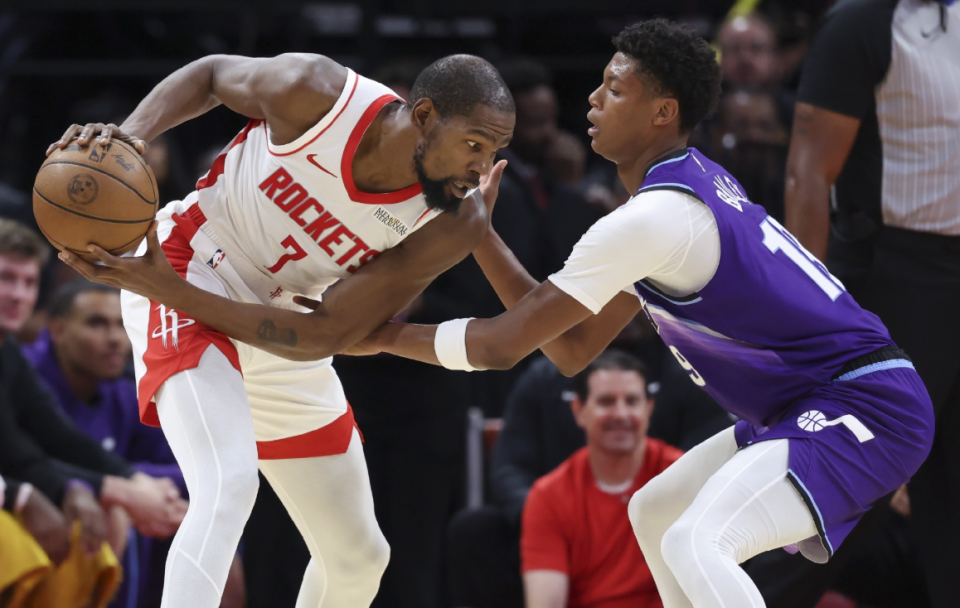 另外一点最重要,上赛季火箭在关键时刻(比赛最后5分钟分差在5分以内),投篮命中率只有38.1%,联盟垫底水准,火箭上赛季常规赛输掉的30场比赛,其中有18场属于在最后5分钟被逆转。而杜兰特上赛季关键时刻总得分超过100分,全联盟只有11人做到这一点。毫无疑问,杜兰特来了就是干这个活的,关键时刻把球交给他,他来解决问题的同时,给年轻人树立自信心,增加更多历练。而火箭新赛季可以确定的是,要围绕阿门+申京+小贾作为战术侧重点,他们承担起火箭兜底下限的工作。