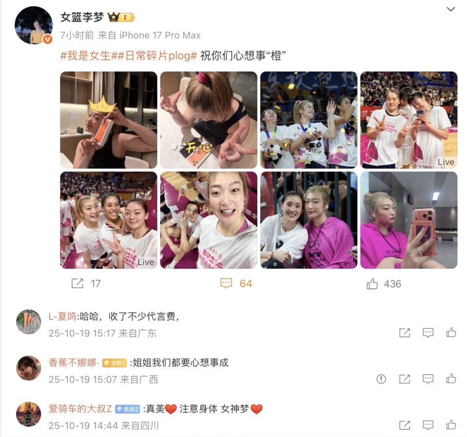 就在球队夺冠后的第二天,这位因病在决赛中表现受限的明星球员,心情似乎并未受到影响,她在个人社交媒体上分享了多张在赛场拍摄的个人照片。照片中的她看起来精神状态良好,她还展示了一款全新的苹果iPhone 17手机,并配上了一段文字:“祝你们心想事‘橙’”,李梦社媒晒苹果新手机,多张自拍让宫鲁鸣难堪,李梦和队友之间的亲密无间,尽管决赛状态不好,但是丝毫不影响好心情,不过有不少声音指出,在决赛出场时间极短且没有得分贡献的情况下,如此高调地发布个人动态似乎不太合时宜,关于李梦的讨论之所以如此激烈,很大程度上源于她近期的职业生涯变动,尤其是在国家队层面的境遇。在新一届女篮国家队的组建过程中,由资深教练宫鲁鸣主持的集训结束后,过去被外界并称为“三巨头”核心之一的李梦,意外地未能入选最终名单。