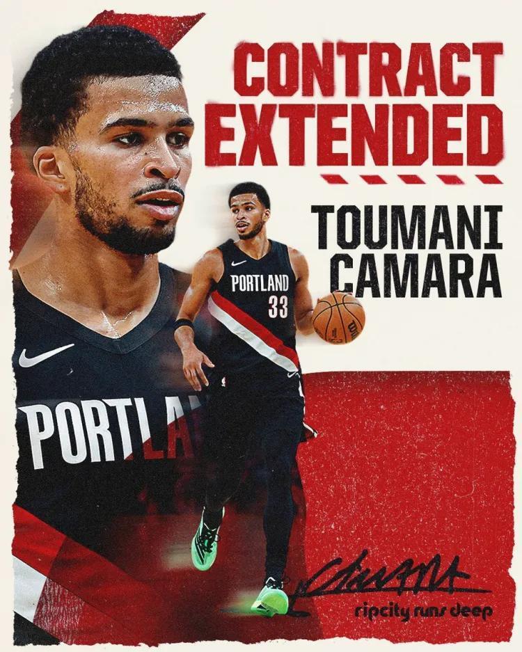 卡马拉这边4年8200万美元续约了开拓者,他显然是非常开心的。比卢普斯在采访环节还打趣卡马拉,让他不要忍住8000万美元的微笑。