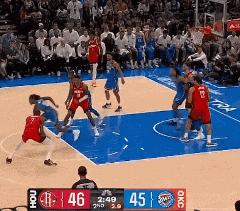 常规赛揭幕战火箭VS雷霆,火箭首发五虎为阿门+杜兰特+小史密斯+申京+亚当斯,平均身高2米09,此乃NBA史上最高首发阵容。