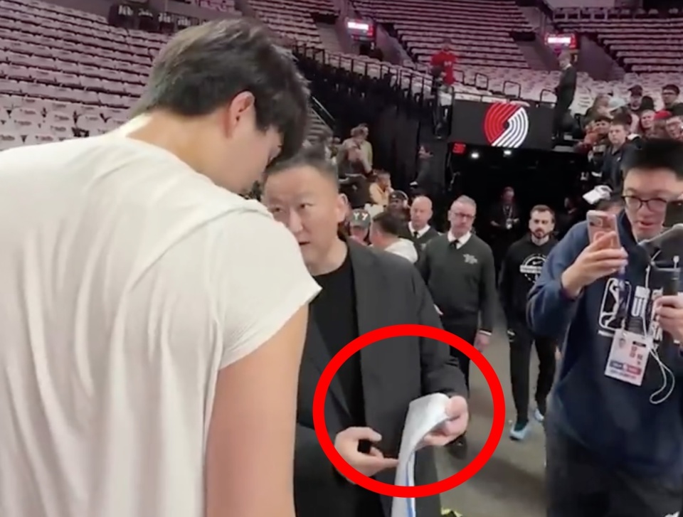 然而,在赛前热身的过程中,现场镜头捕捉到了一幕有意思的画面,引发了在场记者们的持续拍摄。画面显示,刘维伟指导竟然在NBA的比赛场边,直接拿起一块疑似战术的纸张指导起了杨瀚森,这一画面显得十分有意思,毕竟在NBA专业的赛场环境中,出现CBA球队的主教练在场边进行临场指点,这在之前几乎没有出现过。面对恩师的“跨洋”教导,杨瀚森本人也显得非常受用,他认真聆听着刘维伟的叮嘱,并随即向这位年轻的主帅竖起了大拇指,表达了自己的认可与感谢。也直接逗乐了旁边的媒体记者,但也从侧面真切地反映了师徒二人之间非同一般的深厚信任与默契。