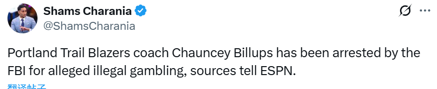 北京时间10月23日,据名记Shams报道,ESPN消息人士透露,波特兰开拓者队教练昌西·比卢普斯因涉嫌非法赌博被联邦调查局逮捕。两名高级执法官员表示,该调查与他执教的比赛无关。