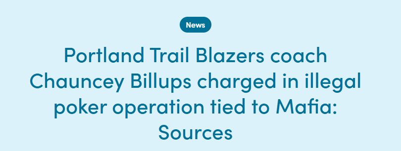 美媒GMA跟进报道,比卢普斯被捕是因其涉及与黑手党有关的非法扑克活动被起诉。消息人士称,比卢普斯在俄勒冈州被捕,预计他将于明日首次出庭。