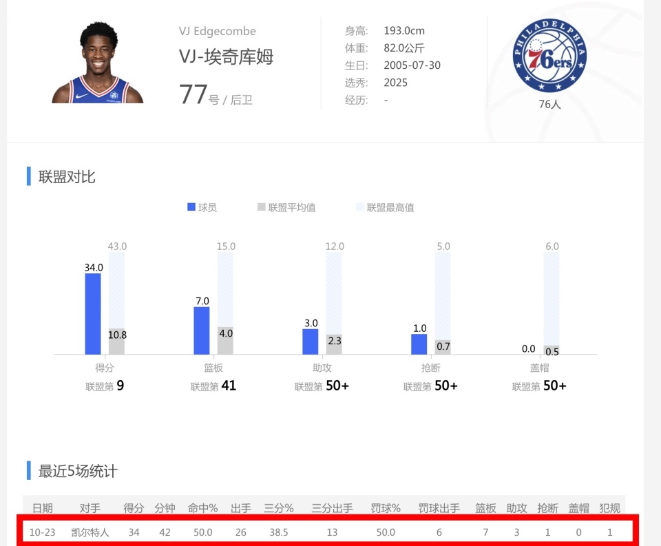 3、埃奇库姆,费城76人,巴哈马球员,34+7+3,首发42分钟,26中13,球队赢球,