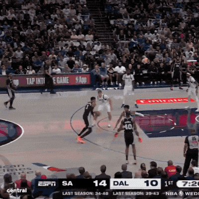 一场在独行侠主场打的揭幕战,打到最后,全场高喊:go spurs go。
