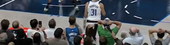 看看场边独行侠球迷的动作表情,整齐划一的,本来都举高双手准备庆祝,最后变成抱头了。
