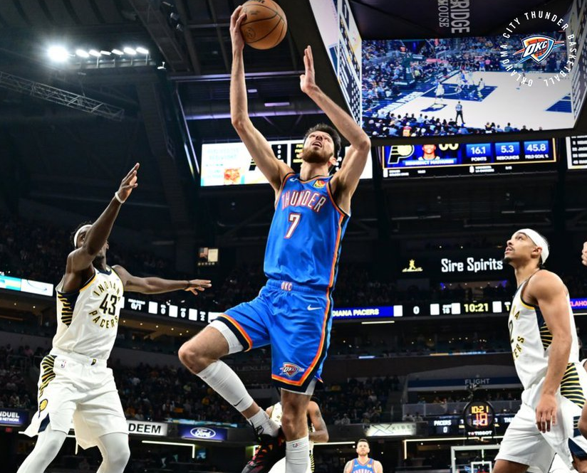 在两天前揭幕战中,雷霆球员领到上赛季总冠军戒指,但他们也被火箭逼到双加时。其中亚历山大在第四节和两个加时独砍24分,带领雷霆1分险胜。雷霆新赛季依旧是夺冠热门,他们最大的优势自然是亚历山大拔高上限的能力,但阵容深度依旧不容小觑。和步行者一战,看起来没有太大悬念,没想到的是,残阵步行者(缺少哈里伯顿+麦康奈尔)却爆发强大的意志力,硬生生将比赛再度拖到第二个加时!而雷霆也成为NBA历史上首支开赛前两场比赛,全部是双加时的球队。这是否意味着他们的实力在被其他球队缩小?