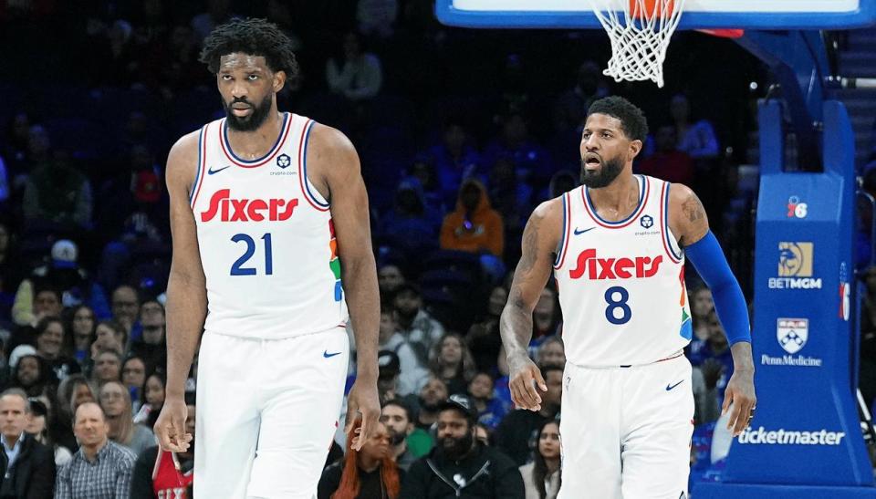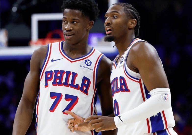 而新赛季这场揭幕战首秀,恩比德打得有多差,就能反衬出他的队友表现有多好。一个是马克西,马克西24投13中,狂砍40分2篮板6助攻,恩比德确实该让位年轻的马克西,胜任球队老大了。上赛季的马克西就没有令人失望,在乔治划水摆烂,恩比德早早报销的情况下,马克西苦苦带队支撑,最终场均也能拿到26.3分3.3篮板6.1助攻,保持着全明星的竞技水准。另一个是今年的探花秀VJ埃奇库姆,常规赛首秀一战,埃奇库姆首发出战42分钟,26投13中,三分球13投5中,罚球6罚3中得到34分7篮板3助攻1抢断。