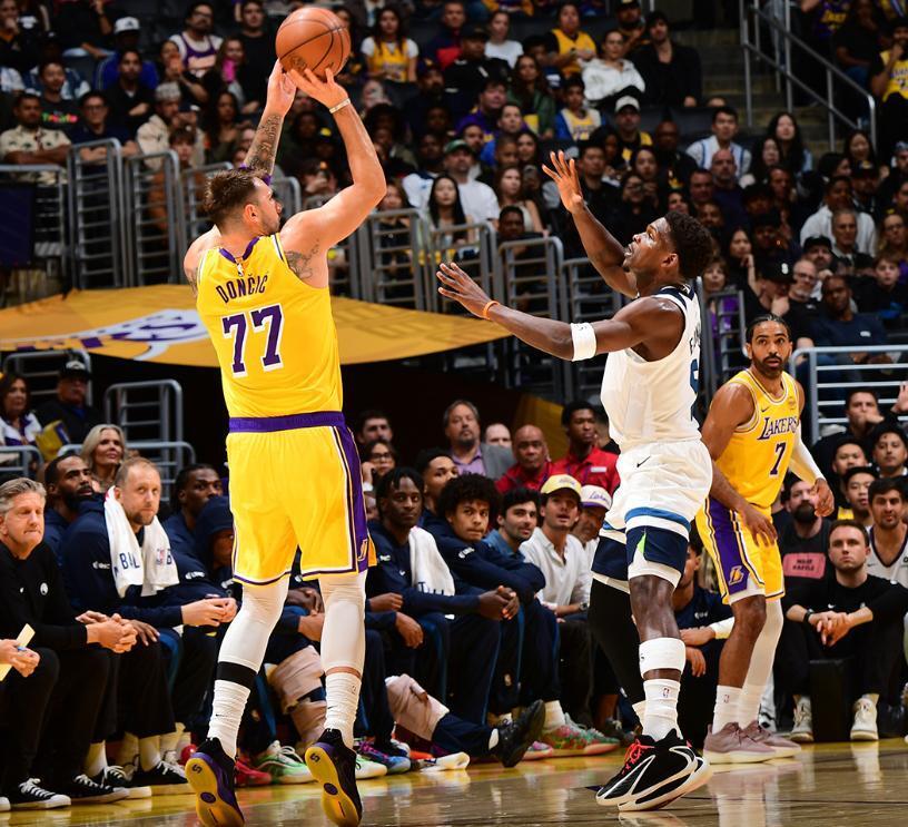 东契奇49+11+8一战2大神迹,统治力完爆华子,湖人主场大胜森林狼
