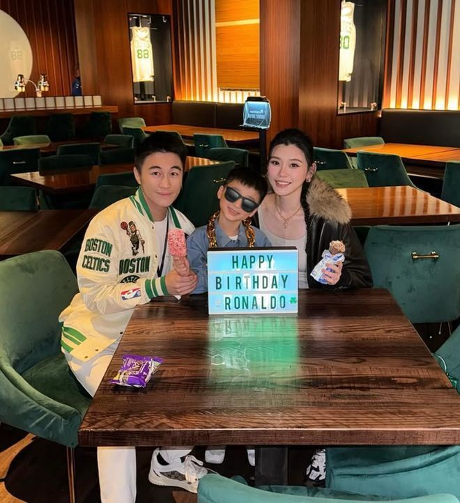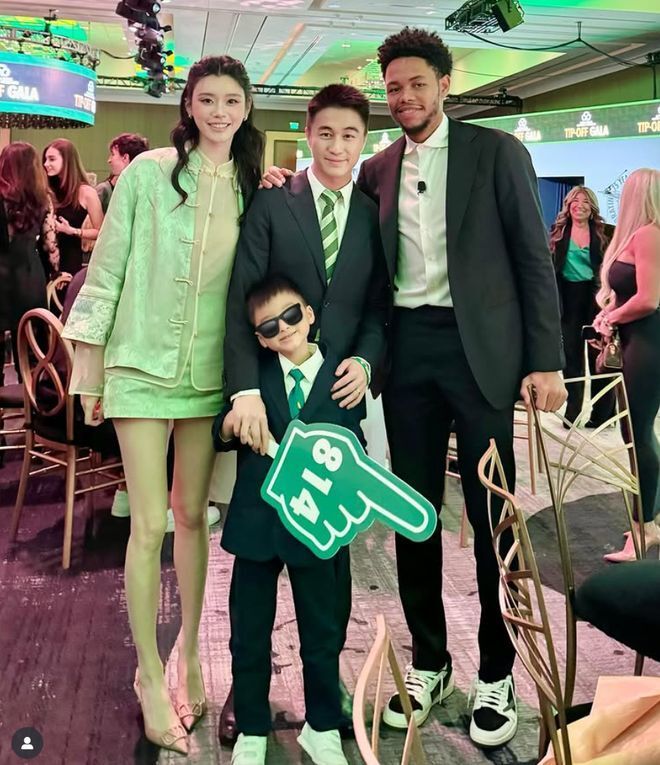 在晒出了妻子和儿子的照片时,何猷君写道:“赛季首秀+罗纳尔多的生日=我生命中最难忘的一天之 #凯尔特人”。