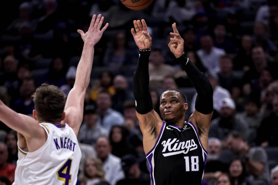 虽然加盟国王队以来,威少的整体表现比较符合底薪合同。但威少的性格我们都是知道的,对上让他憋屈的老东家,状态都是拉满的。今天开局三分5投4中,准到离谱。更是在球队分差被拉开的时候,率队轰出一波13-2完成反超。甚至比赛后半段也毫不手软,全场威少替补出战打了27分钟,12投6中,三分6投4中得到18分6篮板6助攻。这是威少加盟国王队以来,打得最好的一场比赛。本以为这是一场‘威少复仇记’,是一场暮年球星让人泪目的独角戏时,这一切都被毁掉了。而毁掉威少表演的,是里夫斯。在詹姆斯和东契奇全部缺席的情况下,里夫斯确实是坐实了绝对核心的身份。