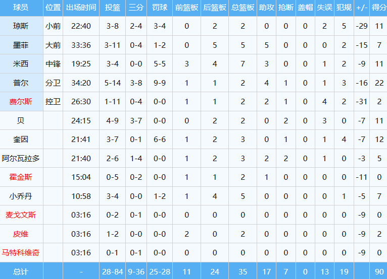 值得一提的是,此役锡安因左脚骨挫伤缺席且归期未定,这哥们本赛季至今场均27分9.5板(5前场板)6助4断,投篮命中率46.2%。