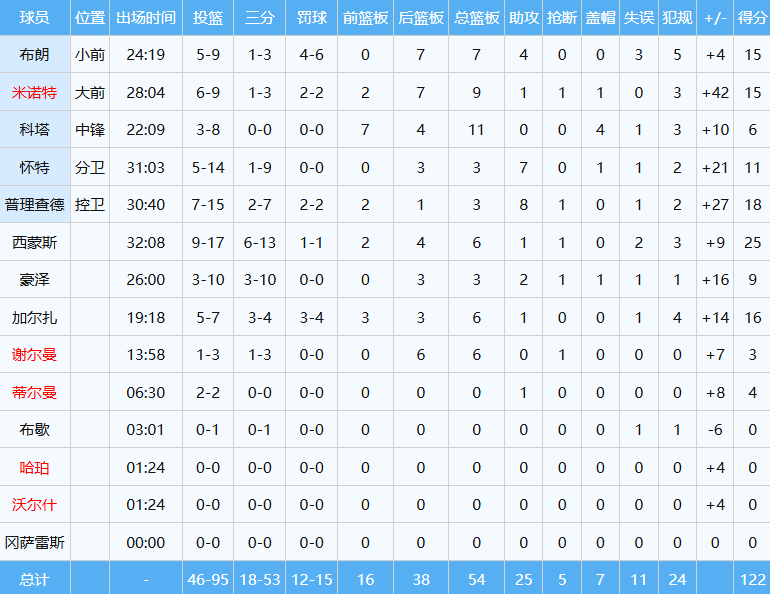 本场比赛凯尔特人多点开花,杰伦布朗15分7板4助,西蒙斯独揽25分6板,普理查德18分8助进账。