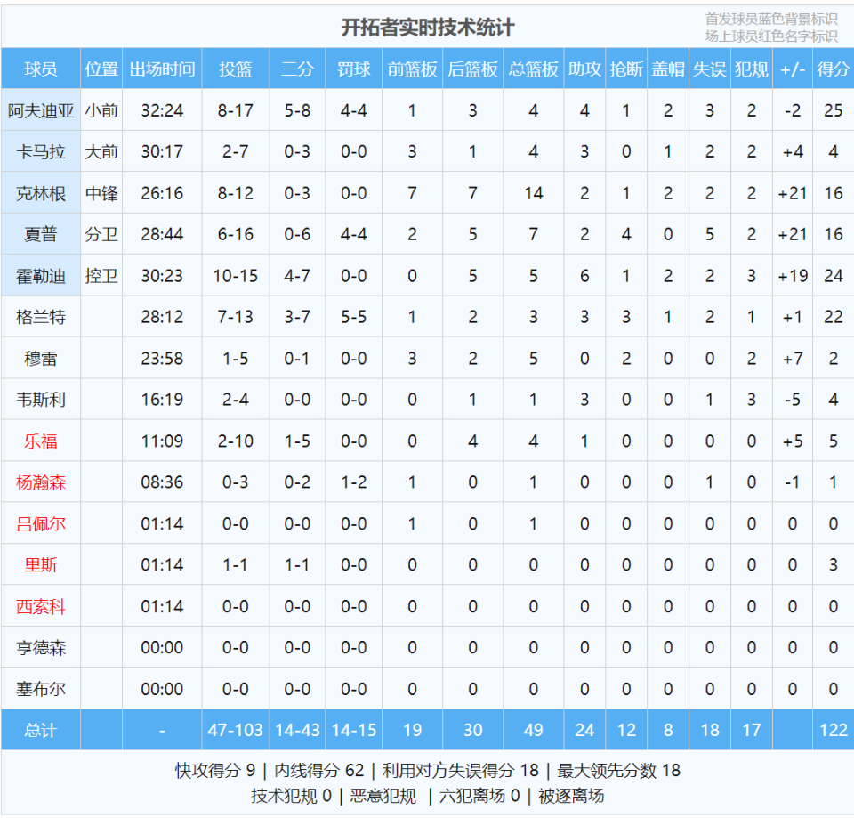 湖人今天只有10名球员可以出战,布朗尼进入轮换名单。昨天里夫斯爆砍51分11板9助2断,看看他今天能否延续火热手感。本赛季前三场比赛,湖人全队的罚球总数达到106个,一共净胜对手38个罚球,两项数据均是联盟第一。
