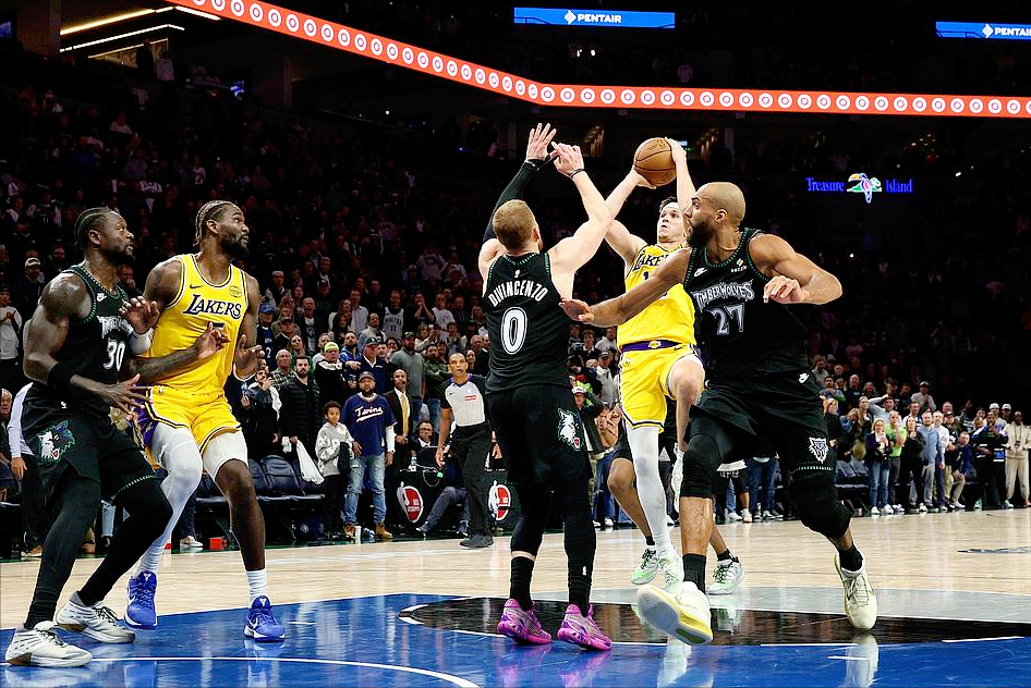 先说这场球的剧情,典型的湖人式过山车。前两节打得顺风顺水,里夫斯虽然被针对,但传球还在线。到了末节2分27秒,艾顿打进之后,湖人还114比106领先8分,眼看要稳赢。结果接下来两分钟突然断电,麦丹和兰德尔连得9分,直接把比分反超成115比114,森林狼那边刚反超,湖人球迷的心都提到嗓子眼了。