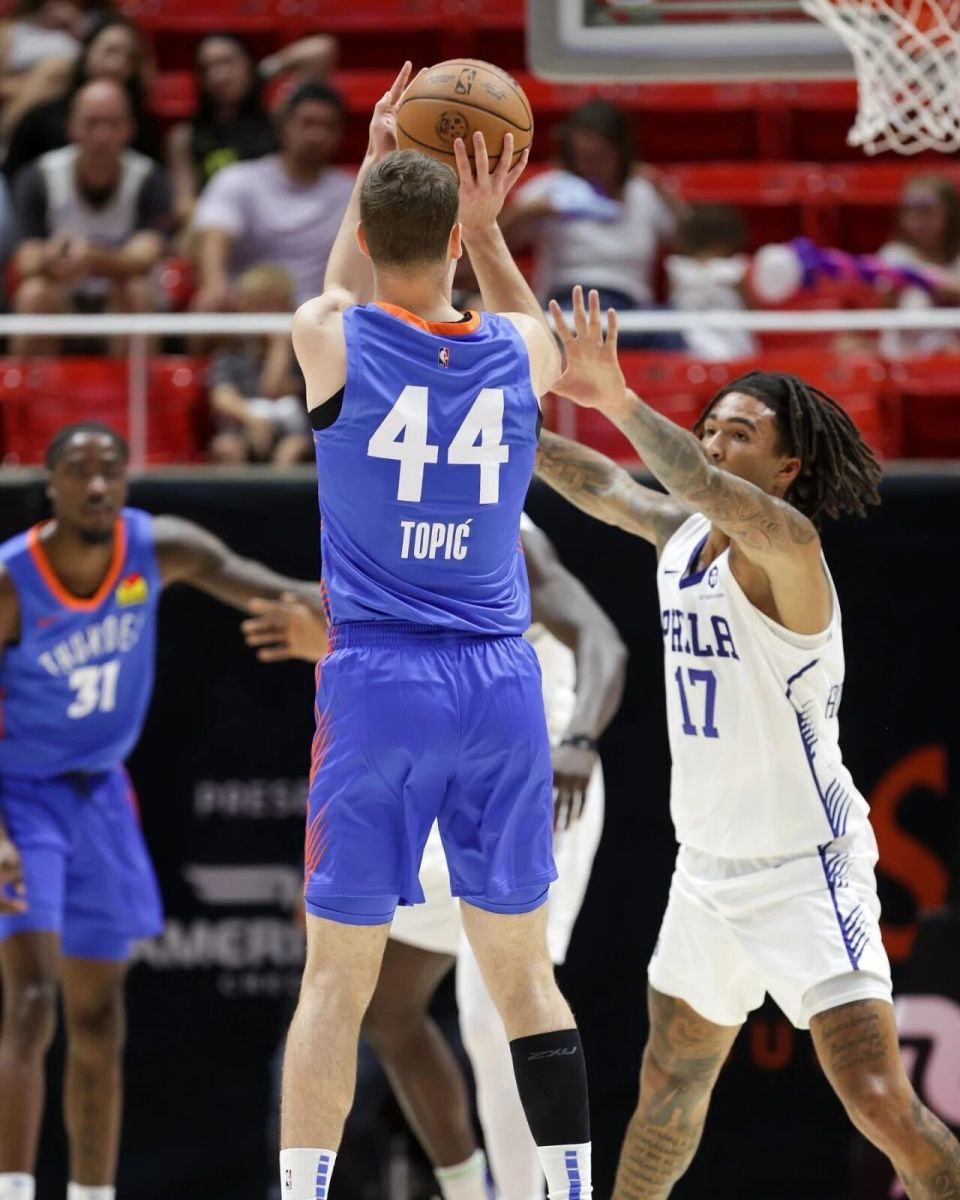 今年季前赛,托皮奇只打1场就休战了:投篮9中4,三球3中0,罚球2中2,拿到10分4篮板7助攻。在托皮奇睾丸手术之后,雷霆宣布执行托皮奇新秀合同第三年球队选项(2026-27赛季,543万美元),普雷斯蒂是真的想培养他!