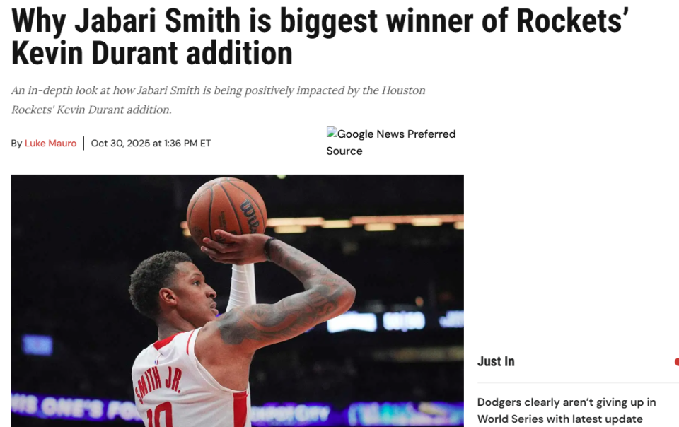 小贾在接受休城当地媒体《Space City Home Network》采访时也毫不掩饰这一点,坦言杜兰特是一名无私的队友,也是一名很好的榜样,自己很高兴向他学习。