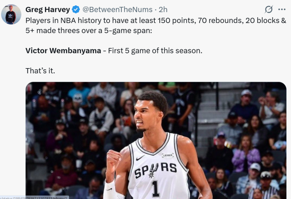 151分24盖帽,文班历史首人!马刺队开季5连胜3大优势保不败金身