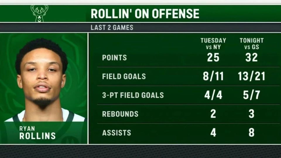 雄鹿原本计划是让罗林斯担任第六人,没想到首发得分后卫小凯文-波特,在新赛季才打了一场比赛就脚踝受伤进入伤停。罗林斯被放入首发,大爆发就此开启!