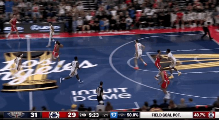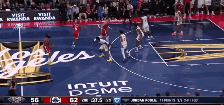末节比赛开始,奎因补篮打进,洛佩斯空接暴扣,普尔和锡安连续罚球得分,鹈鹕打出一波7-0高潮,成功追分到2分。科林斯三分命中,哈登2罚全中,锡安突破上篮,哈登连得5分。费尔斯抛投打进2+1,普尔三分命中,哈登突破再进,墨菲和费尔斯连得5分,鹈鹕再次扳平比分。小琼斯和莱昂纳德连续三分命中,锡安2罚全中,普尔上篮得手,莱昂纳德连续得分。鹈鹕最后58.5秒仍落后4分,萨迪克-贝2罚全中,莱昂纳德致命失误,锡安造成犯规2罚全中,在最后9.6秒扳平比分。快船凭借着莱昂纳德的读秒压哨绝杀中投,最终快船险胜鹈鹕。