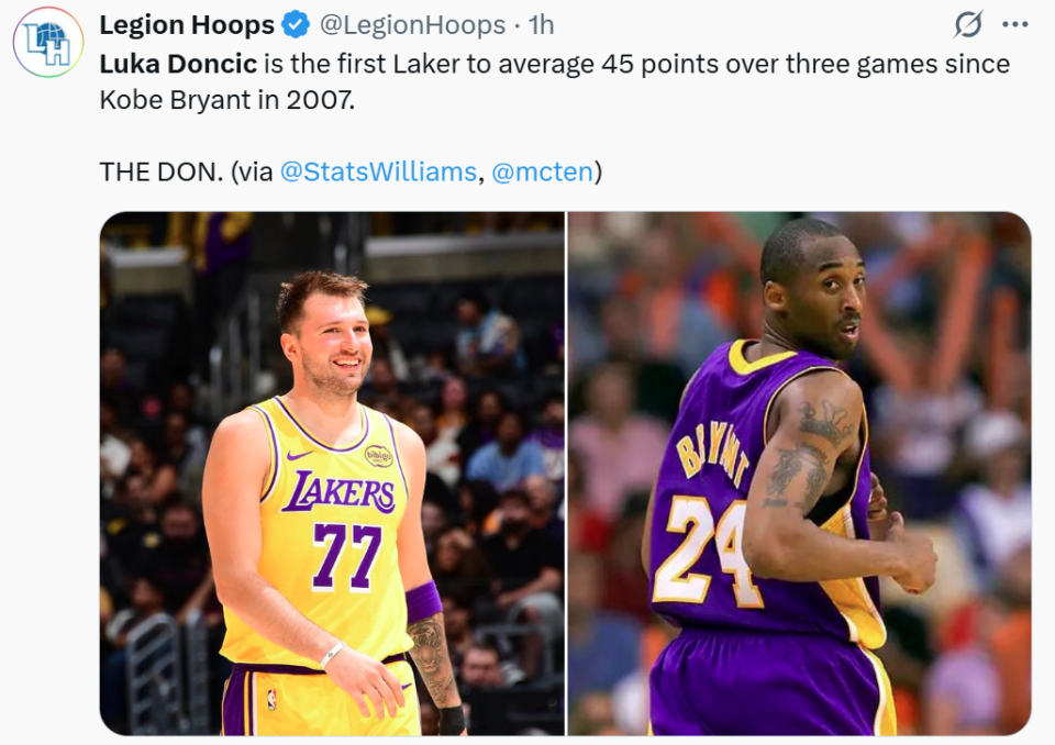其中伤愈复出的东契奇无疑是本场比赛湖人队赢球的最大功臣,又一次轰下40+得分表现成功打破NBA一项尘封了62年之久的纪录。