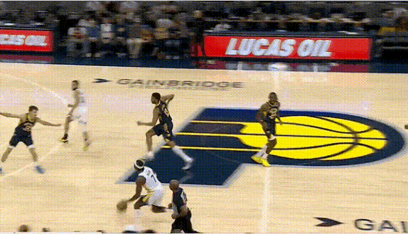 但步行者毕竟是近两年连续打进东决的强队,卡莱尔教练调整迅速,西亚卡姆重新登场后连续得分,几乎可以错位强吃勇士这边的所有防守者,第一节他5投5中拿下10分2板,步行者以28-32暂时落后。