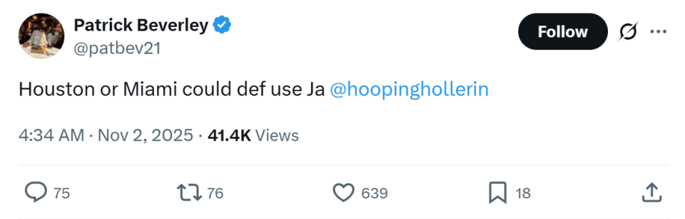 火箭队旧将贝弗利更是第一时间在社媒支招火箭队与热火队抢人,认为两队能够用好莫兰特。