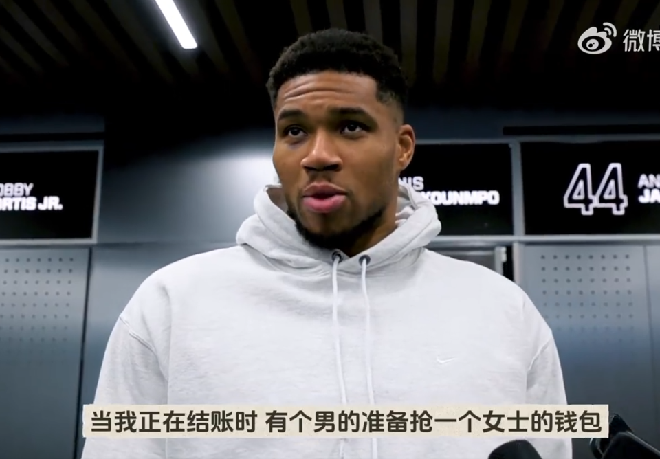 赛后采访时,记者注意到了字母哥的右眼部有一块淤青,采访时他讲述了出现淤青的原因是遇到了抢劫犯,在制服歹徒的过程中被打伤。