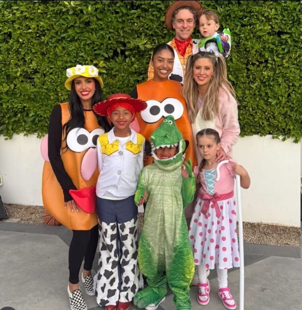北京时间11月3日,已故NBA名宿科比-布莱恩特遗孀瓦妮莎再次晒出全家人与加索尔及家人一起过万圣节的照片。在照片中,两家人的装扮都非常滑稽可爱,从瓦妮莎的笑容可以看出,她已经渐渐从那件悲伤的事情中走出来,迎接好生活。