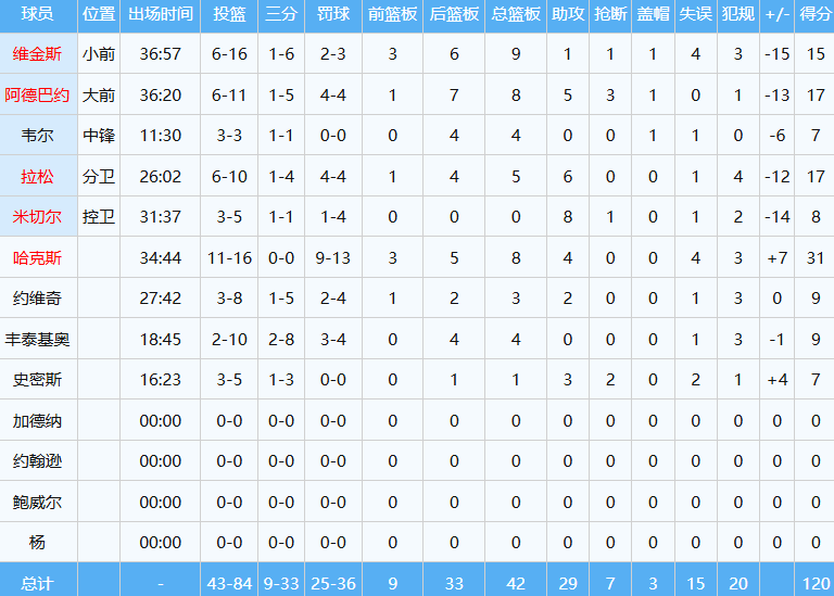热火全队数据如下: