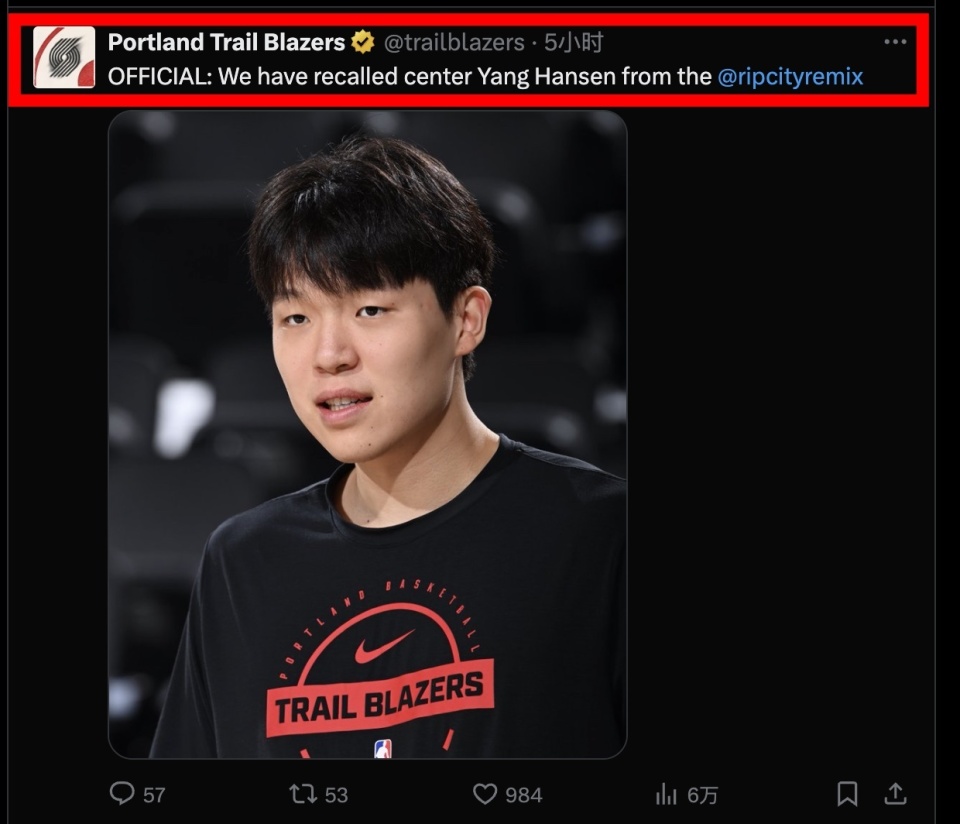 当央视cctv5决定紧急调整播出计划,在11月4日中午11时将镜头对准开拓者与湖人的对决时,无数中国球迷的心情是复杂的。这本应是杨瀚森旅美生涯的又一个高光时刻,尤其是在他被开拓者官方召回仅仅5小时之后,杨瀚森一度登上微博热搜第二的位置,杨瀚森正处于挣扎期,除了在进攻端为队友执行挡拆尚可圈可点之外,他在其他方面的发挥均未达预期,尤其是体能储备和身体力量强度上的短板暴露无遗。在这样的状态下,被推到央视全国直播的聚光灯前,这究竟是一次宝贵的展示机会,还是一个可能被无限放大的严酷考场,这让所有关注他的人都捏了一把汗。(信息源@开拓者官方 @央视cctv5官方节目表)