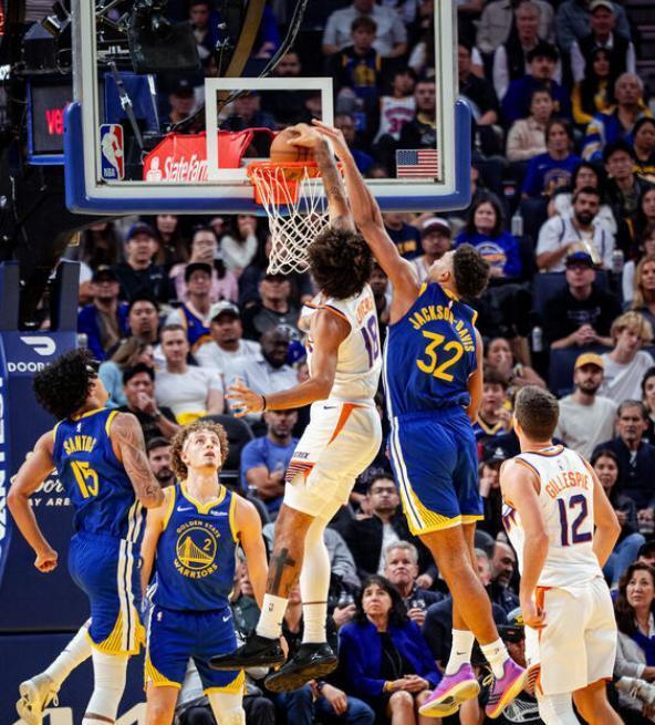 感到压力的勇士,第四节开始疯狂包夹布克,不敢再给他一点轻松出手的空间,此举也摁住了对手连续得分的势头,末节布克只有4分进账,虽然也交出了38分、3个篮板和4次助攻的数据,但没有能够率领球队上演大逆转。