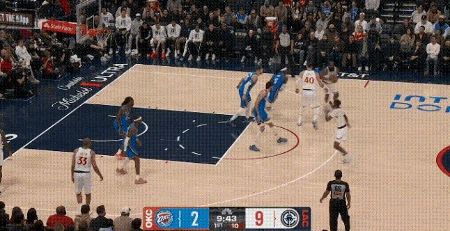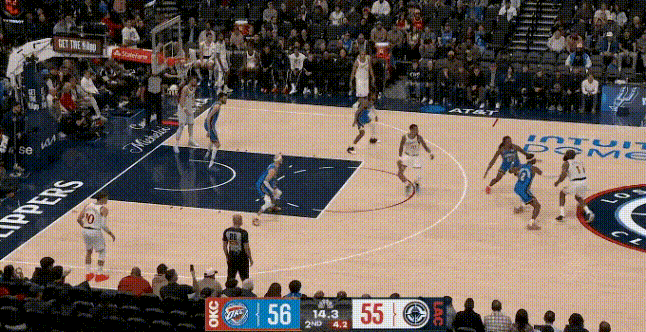 第二节开始雷霆独步联盟的全场高压紧逼开始奏效,由保罗带队的替补阵容很难扛住这样的强度。