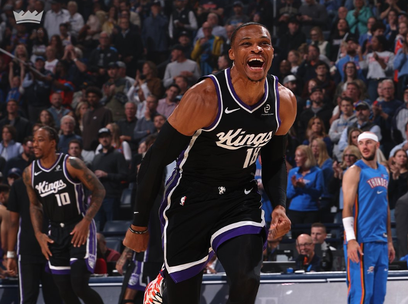 和勇士一战,威少又是打四号位,13中9,砍下23分16篮板10助攻,打到关键时刻,威少连续喂饼施罗德,自己也轰三分,至于后场篮板,都是他的,勇士所有人都抢不过。包括最后时刻对于波杰姆斯基成功防守,逼出失误,锁定胜局!威少也成为NBA历史上首位在7支不同球队,都拿到三双的球员,合计204次!生涯第18个赛季还能拿到三双,NBA历史首位控卫做到这一点!单场至少20+15+10,国王队史最近40年来第四位!威少可是只拿着无保障的底薪!打完掘金后,威少说,掘金不希望我回归,他们让我别执行球员选项,所以我跳出。