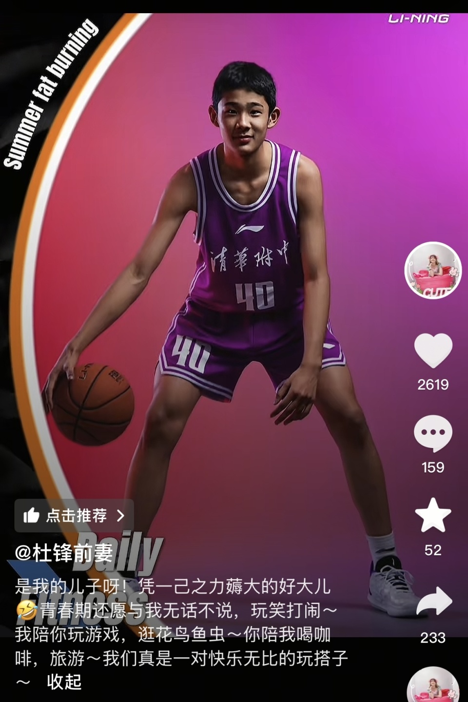 近日,杜锋前妻马晨菲晒出了儿子“虎头”身披清华附中球衣的照片,并表示这是自己一己之力养大的儿子。