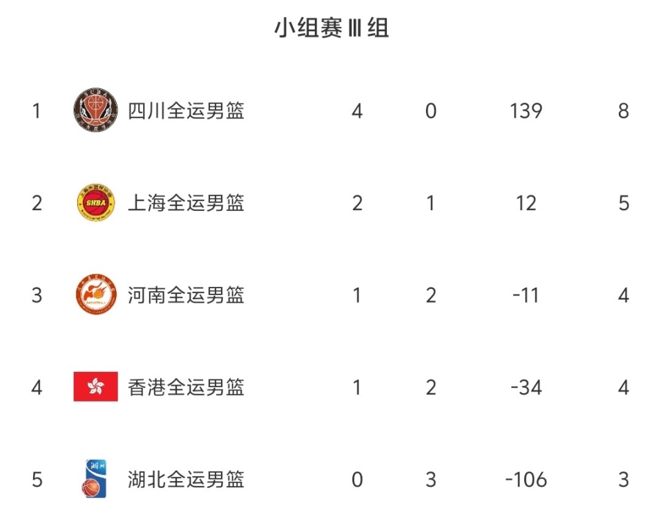 随着四川82-63大胜上海,辽宁队4连胜,全运会男篮最近排名出炉!