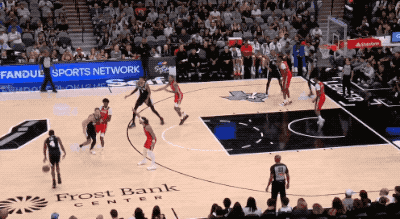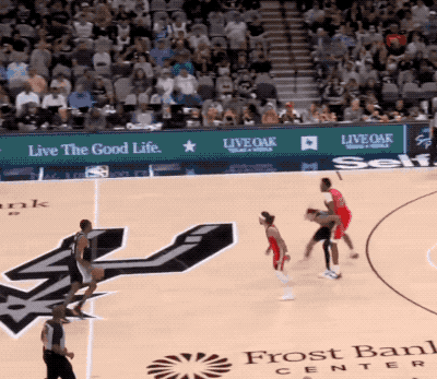 第二节只打了6分钟,福克斯一个人就砍下了15分,这一波连续的进攻高潮连得给人看的呀,都莫名其妙相信这赛季马刺要夺冠了。
