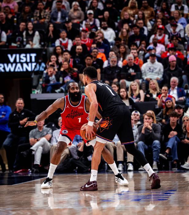 经过中场调整之后,快船在下半场开始死掐布克,根本不给他轻松出手的机会,极具侵略性的防守,也取得了立竿见影的效果,后两节布克的得分效率明显下滑,最终四节战罢只有19投8中的命中率,但依旧贡献了21分、10个篮板和9次助攻的准三双数据,在他的率领下,太阳一共6名球员得分上双。