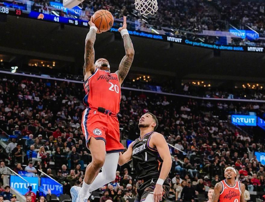 NBA常规赛,快船坐镇主场迎战太阳队。赛季刚开始,快船就陷入瓶颈期,他们3胜5负排名西部第11;近期遭遇一波3连败,小卡老毛病再犯,又开始因伤休息了;祖巴茨的篮下统治力,相比上赛季有所下滑;比尔、保罗这些老将新援也不太给力,两人场均得分加起来不到10分;再加上泰伦卢乱排兵布阵,不知道为何始终不让科林斯打首发。