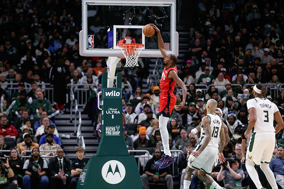 第三节彻底变成神仙打架,杜兰特和字母直接对轰。这一节杜兰特单节15分,字母14分,火箭靠着杜兰特的火力,三节战罢追到只差3分。