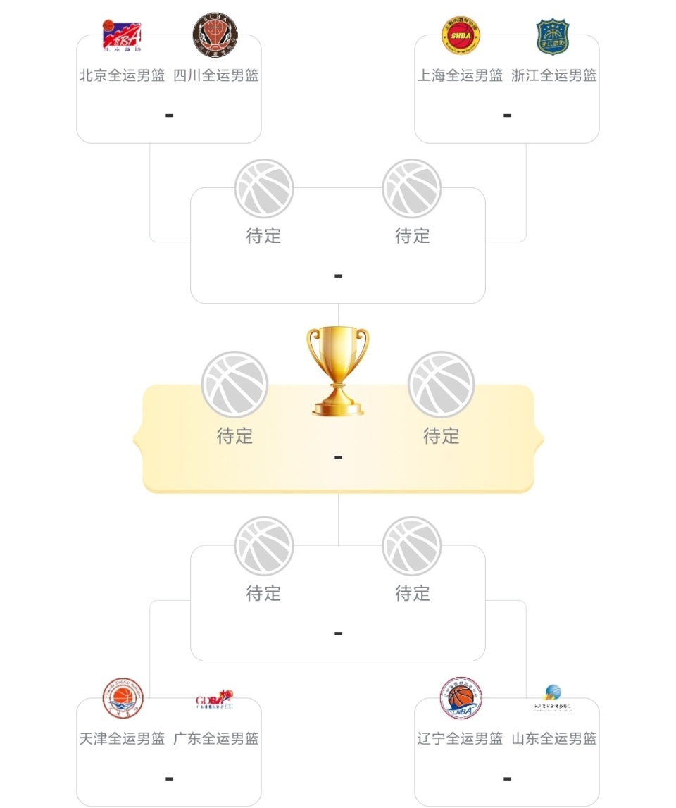 北京时间11月10日,全运会男篮1/4决赛今天开打,在结束了小组赛的争夺后,8强和1/4决赛的对位+赛程已经出炉: