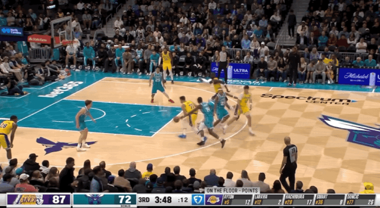 黄蜂表现顽强,在最后时刻一度缩小分差到6分,艾顿在禁区遭到包夹,裁判吹罚双方争球。湖人获得球权,东契奇错失制胜三分,但回头黄蜂也投丢追分三分,东契奇罚球稳稳命中锁定胜局,最终湖人有惊无险地击败黄蜂。