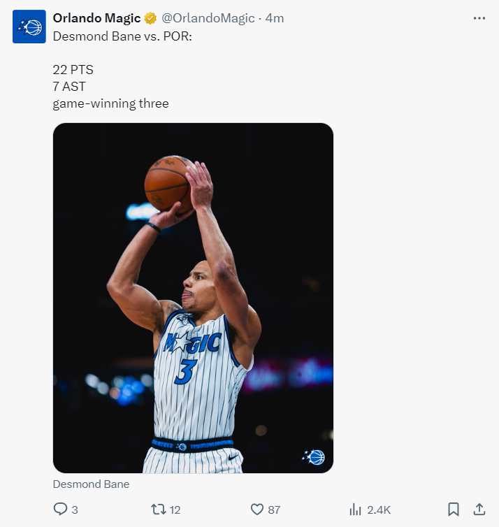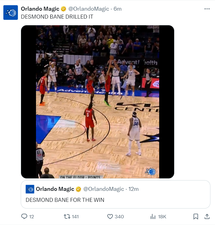 贝恩登上了全美体育热搜第三的位置,大家都知道奥兰多不是什么大球市,开拓者实际上也不是大球市,所以贝恩这个绝杀都没有进入全美热搜而是全美体育热搜而已,但对于奥兰多球迷来说,这一刻他们期待已久。