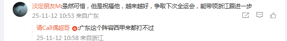 媒体人“三土带刺”发文点评:“全运期间,他们队正好没比赛,完美错开,所以说他没错过联赛的比赛。而下一场是15日,按说今晚打完也来得及吧,但各有原因,挺可惜。”