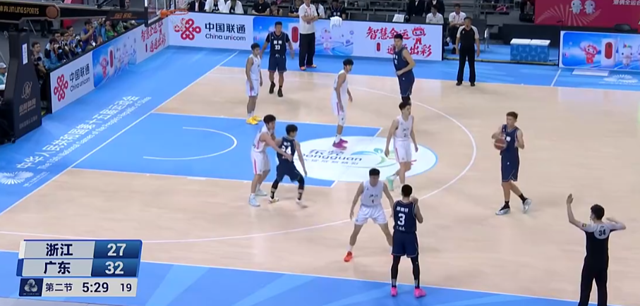 次节,朱俊龙助攻张洪硕暴扣,沈梓捷单吃张洪硕,徐杰命中三分,张洪硕制造了赵睿进攻犯规(第三次),赵睿一脸无奈。广东全队配合沈梓捷篮下暴扣,沈梓捷上抢吃了一次犯规,朱俊龙突破制造周鹏犯规,周鹏失误但浙江反击没进,胡明轩打板三分,贺希宁大帽后反击一条龙,徐杰三分再中拉开到14分打停浙江。朱俊龙命中三分,徐杰三分回应,徐杰上半场第五个三分,王睿泽压哨三分超时,半场打完广东53-42领先浙江。