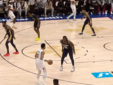 次节开场鹈鹕打出一波11-5的攻势完成反超,鹈鹕的第二阵容发挥不错。奎因这个点是越打越自信,当开拓者用小阵容时他在篮下肆虐,琼斯也命中三分,开拓者好不容易反超后鹈鹕又追回差距,残阵鹈鹕多点开花,替补席的奎因半场16分6篮板,他成为鹈鹕上半场反超的关键,半场打完鹈鹕59-57领先开拓者。