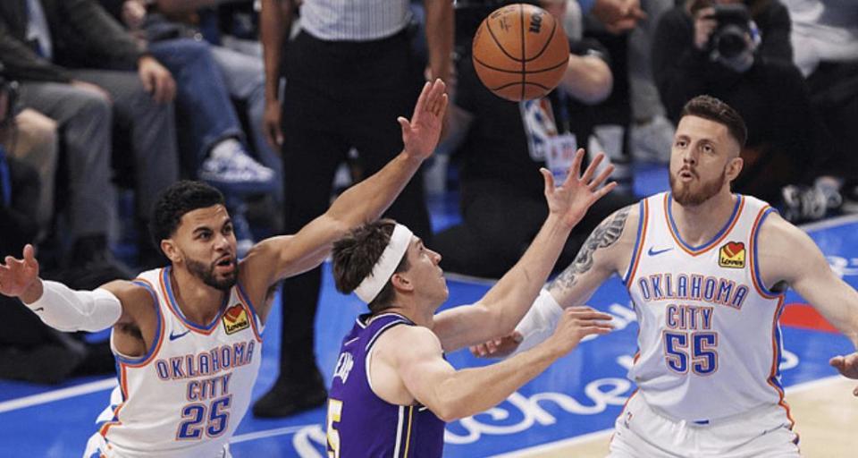 北京时间11月13日,NBA常规赛,雷霆坐镇主场迎战湖人。本场比赛之前,湖人8胜3负排名西部第3;虽然说湖人开局战绩很好,但总感觉他们在场上的统治力没有那么强,赢球基本靠东契奇和里夫斯爆种;这俩人一状态不好,球队就会快速崩盘。此外,湖人的投篮命中率联盟第一,但防守效率却在联盟倒数,防守还是有问题。