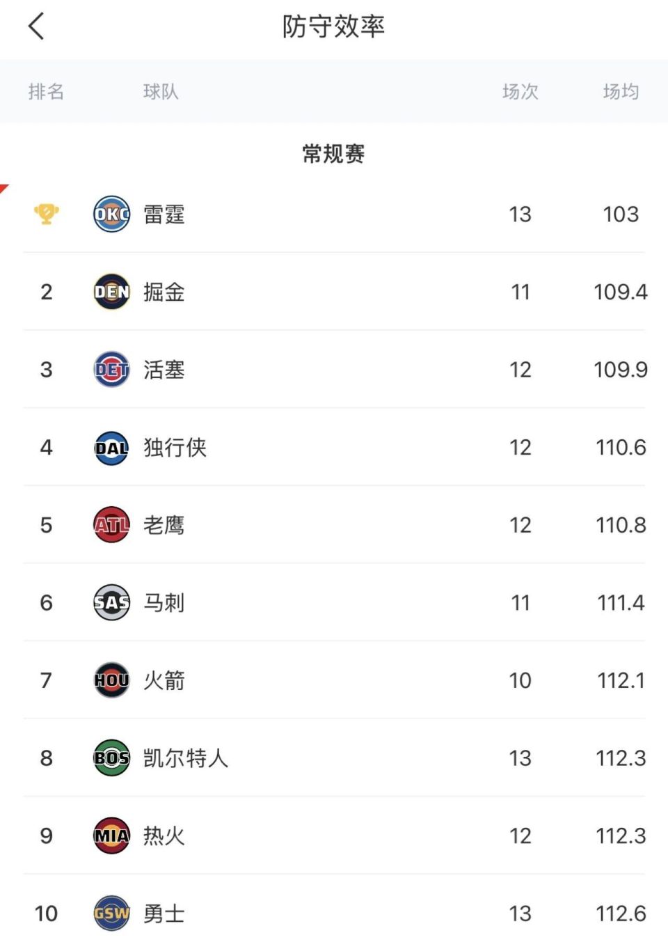雷霆本赛季防守效率103,高居联盟第一;场均净胜对手15.5分,也是联盟第一;场均得分联盟第5,场均失分联盟第1;防守篮板、场均抢断和利用对方失误得分,均是联盟第1。这支雷霆攻防一体,防守更是断档式领先。